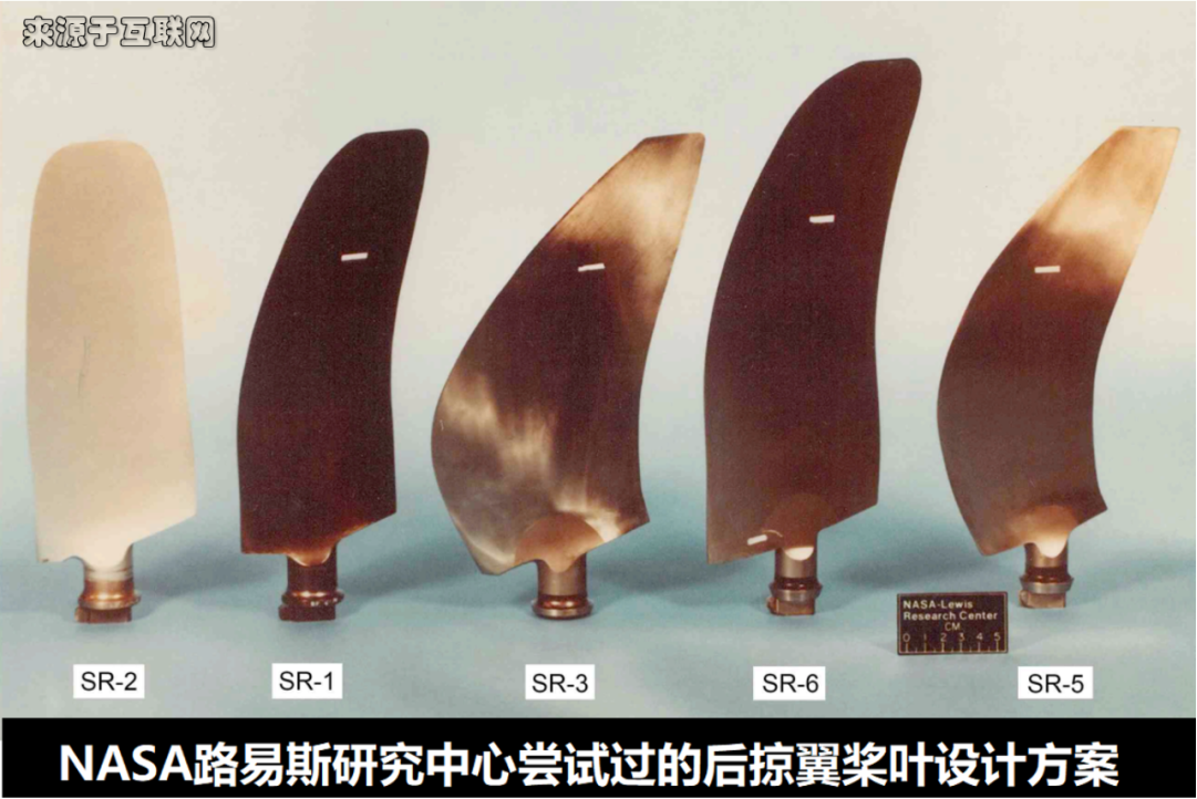 ??槳扇發(fā)動機(jī)一般采用兩排槳葉同軸對轉(zhuǎn),每片槳葉又寬又薄,前緣尖銳并帶有大后掠——借鑒了超聲速戰(zhàn)斗機(jī)后掠翼的設(shè)計智慧,同時后排槳葉還可以將前排槳葉產(chǎn)生的旋流捋順成直流,把原本浪費在空氣旋渦里的能量全數(shù)回收,讓槳扇發(fā)動機(jī)能夠保持高效運轉(zhuǎn)。